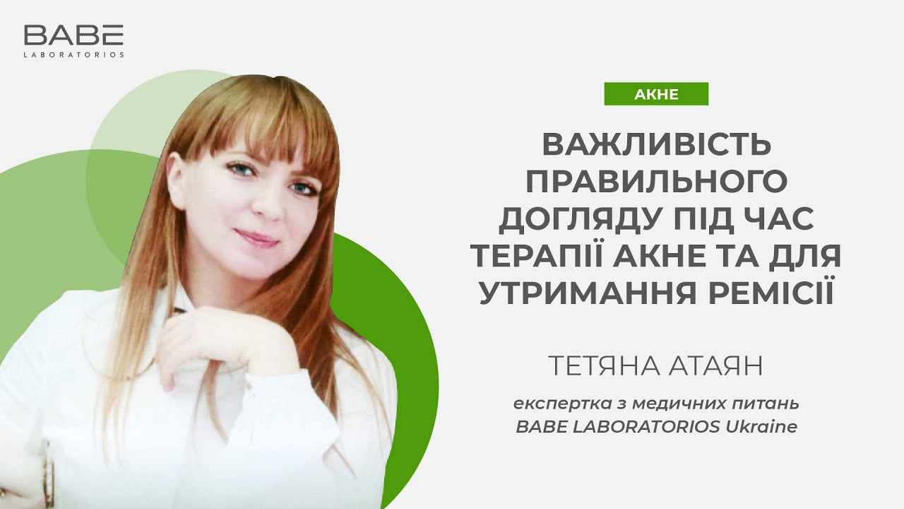 ”ВАЖЛИВІСТЬ ПРАВИЛЬНОГО ДОГЛЯДУ ПІД ЧАС ТЕРАПІЇ АКНЕ І ДЛЯ УТРИМАННЯ РЕМІСІЇ” Тетяна Атаян, експертка з медичних питань ВАВЕ LABORATORIOS Ukraine