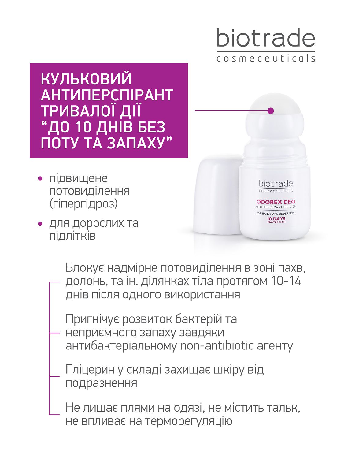 Залиште відгук першим “КУЛЬКОВИЙ АНТИПЕРСПІРАНТ ДЛЯ ТІЛА ТРИВАЛОЇ ДІЇ ODOREX / «10 ДНІВ БЕЗ ПОТУ ТА ЗАПАХУ» 40 мл”