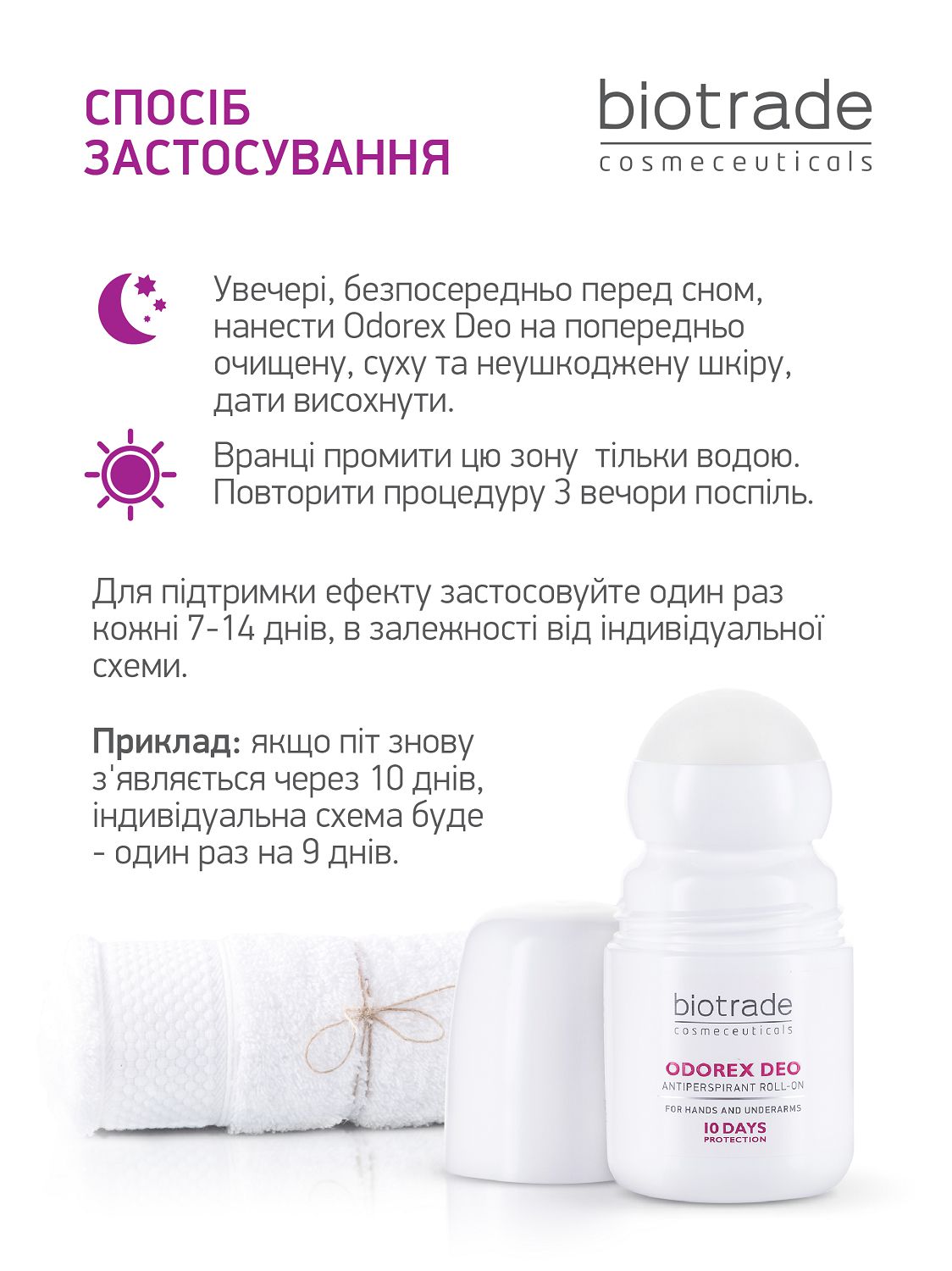 Для тривалого ефекту наносіть Одорекс один раз в 7-14 днів.