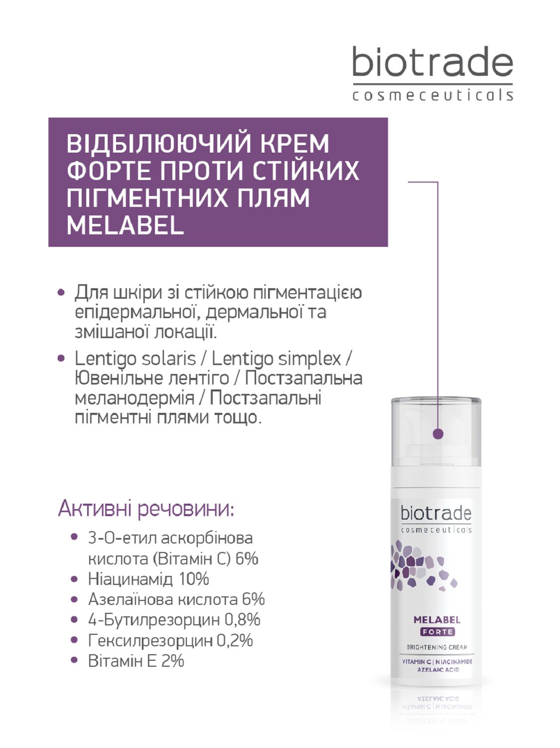 ОСВІТЛЮЮЧИЙ КРЕМ ПОСИЛЕННОЇ ДІЇ MELABEL ФОРТЕ / ДЛЯ ШКІРИ ІЗ СТІЙКОЮ ГІПЕРПІГМЕНТАЦІЄЮ 30 мл