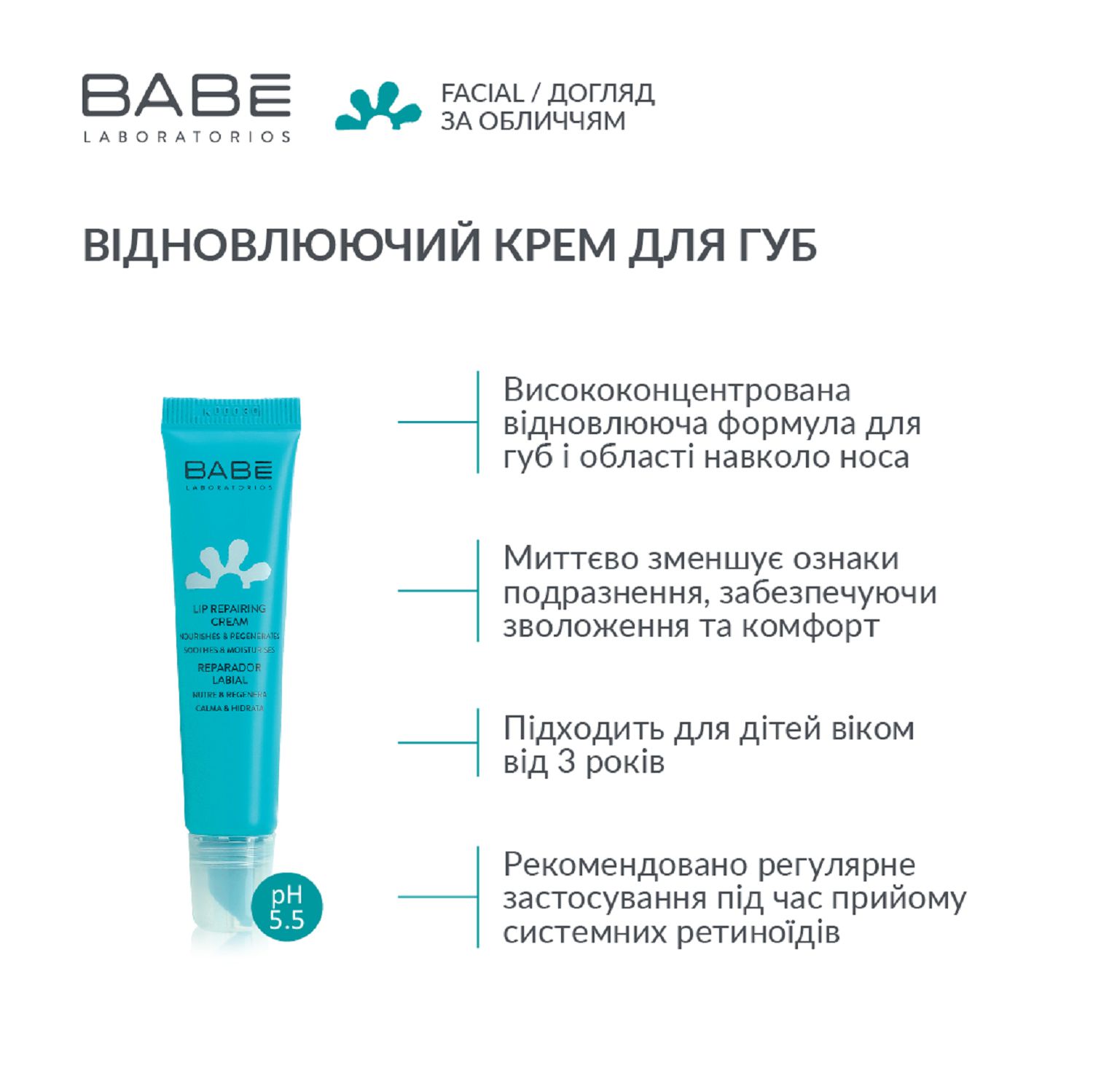 Ідеально справляється з сухістю на губах, навіть коли на є лущення або подразнення. Надає мега живильну і зволожуючу дію. Пом’якшує і заспокоює шкіру. Можна застосовувати на ділянки навколо губ і в зоні носа. Висока концентрація активних компонентів швидко знімає неприємні симптоми і надовго забезпечує почуття комфорту. Можна використовувати навіть дітям з 3-х років